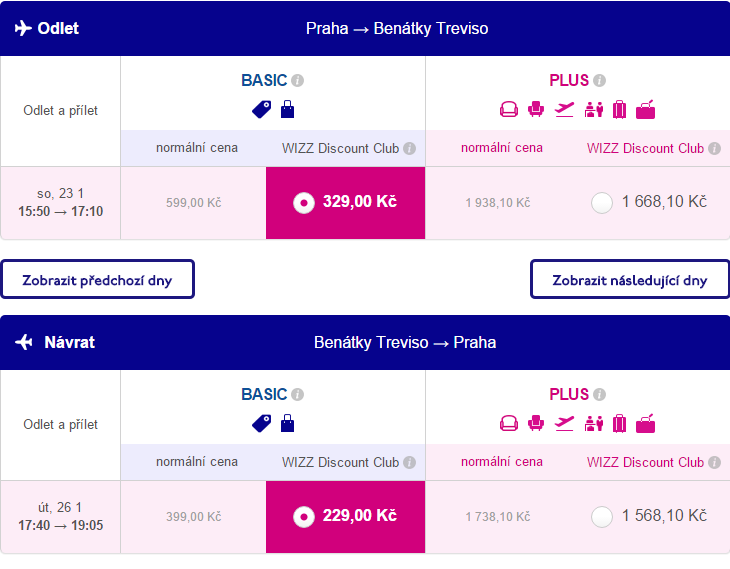 Pokud se chystáte na karneval do Benátek, tak vězte, že tato cesta vám nemusí vůbec provětrat peněženku. Zpáteční letenky můžete zakoupit s odletem z Prahy od 558 Kč. Tato cena je platná pro členy WDC, ostatní si bohužel připlatí 540 Kč. Pokud ale plánujete tuto cestu ve více jak 2, pořiďte si k letence členství v klubu.