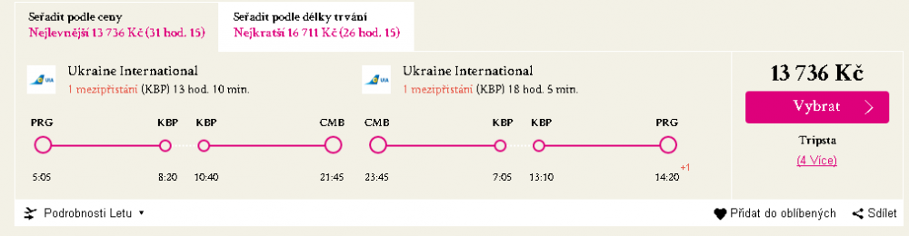 - Praha - Colombo - Praha