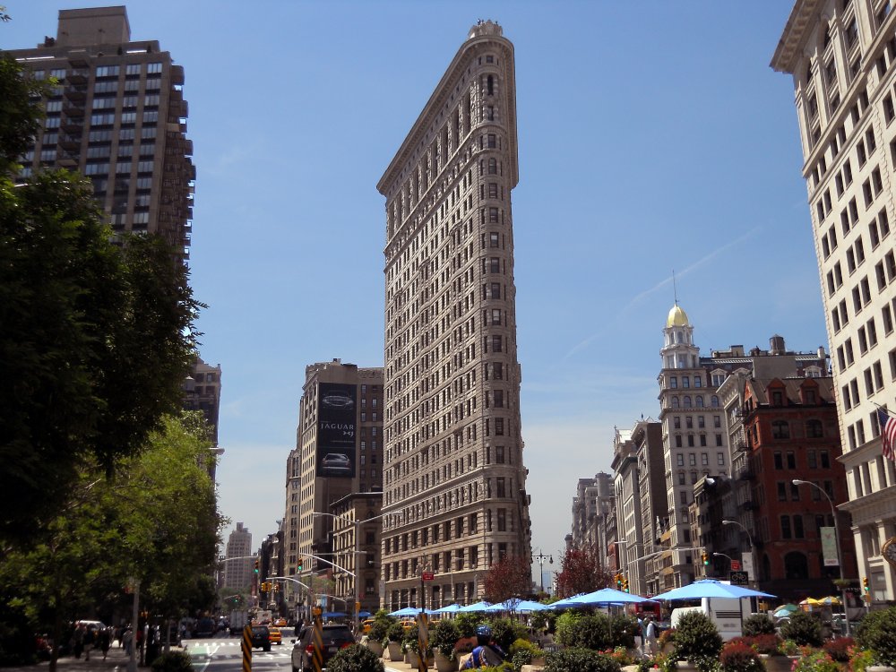 Když půjdete pro Broadwayi jižním směrem, projdete Divadelním okrskem (Theater District) až k neonové džungli na Times Square, dále na náměstí Herald Square, kde se nachází známý obchodní dům Macy's, a pak k Madison Square Parku, na jehož jižní straně stojí slavný trojhranný mrakodrap z roku 1902 nazývaný Flatiron Building („žehlička“).