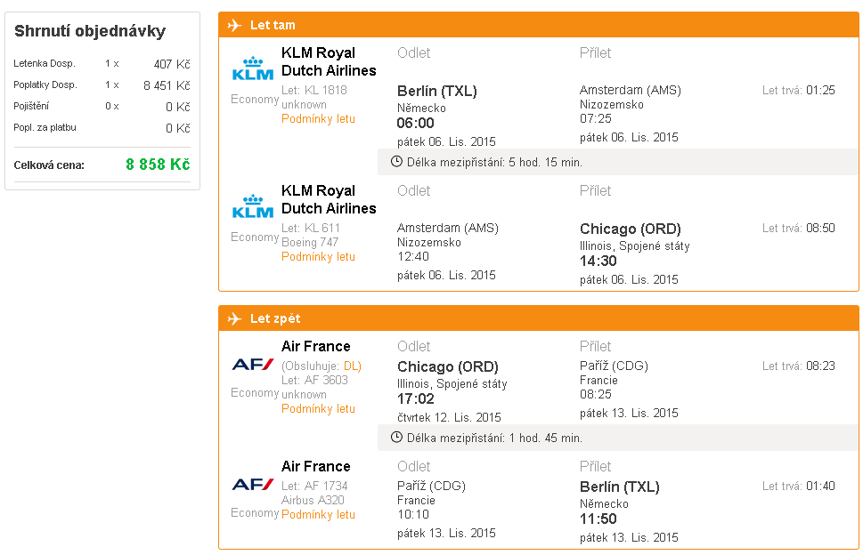 Velice vstřícný tarif do Chicaga a zpět si pro Vás připravily letecké společnosti KLM Royal a Air France. Zpáteční letenku zakoupíte již od 8 858 Kč s odletem z Mnichova nebo Berlína.